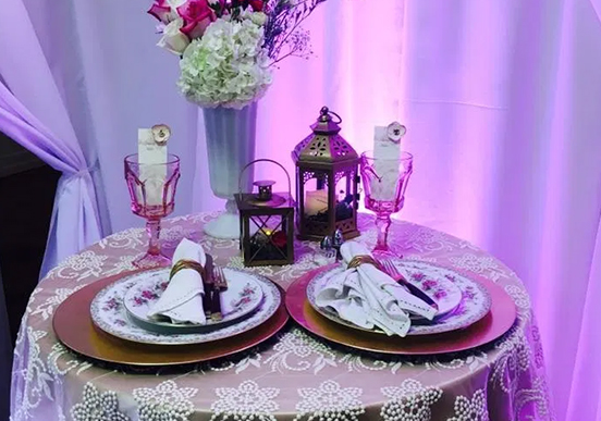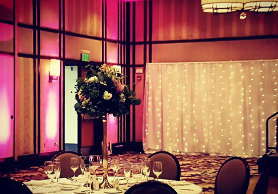 Pipe and drape decor can transform your event by letting you change the way your space is designed. Use it as a room divider, as a mood setter, or as a background. Coupled with the right lighting, a drab venue can easily be spruced up with pipe and drape decor. Take it one step further with ceiling drapery or a wide variety of custom drapery look.