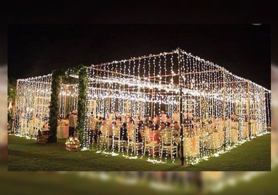Our string lights are also available in different styles to match with your occasion. We can set them up indoors, outdoors, horizontally, or vertically.