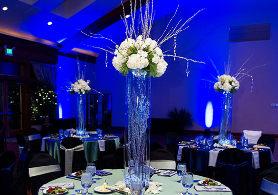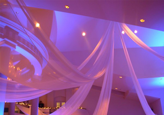 Having the unit on a specific color or fading through multiple colors, only lights up a 10′ x 10 area but creates a nice colorful ambience. When a colored option is preferred we recommend using a mixture of colored and bright white settings….. keeping every other ball on a bright white while the alternating balls are on a colored setting.