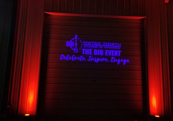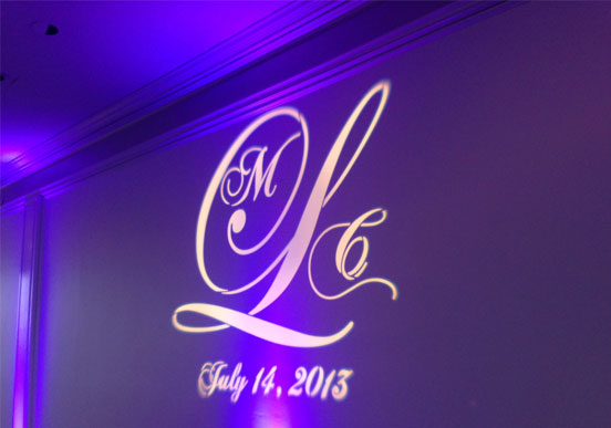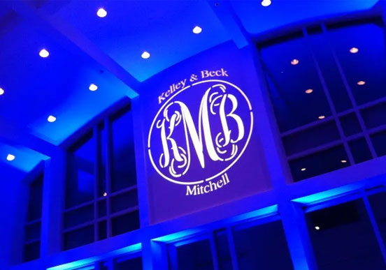 Nothing completes an event like a personalized monogram. Take pride in your company logo, flash a message for your guests, or display your name in lights with our GOBO Monogram Imaging. We can also display the date of your event or anything you can think of to liven up a wall or a pipe and drape decor.